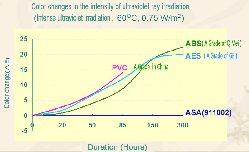 ASA is a copolymerization of Styrene, Acrylonitrile, and Acrylic rubber. Technically, ASA not only maintained the main characteristics of the ABS, it also combines the weather resistance advantage of acrylic to extend the product application for outdoor purposes.